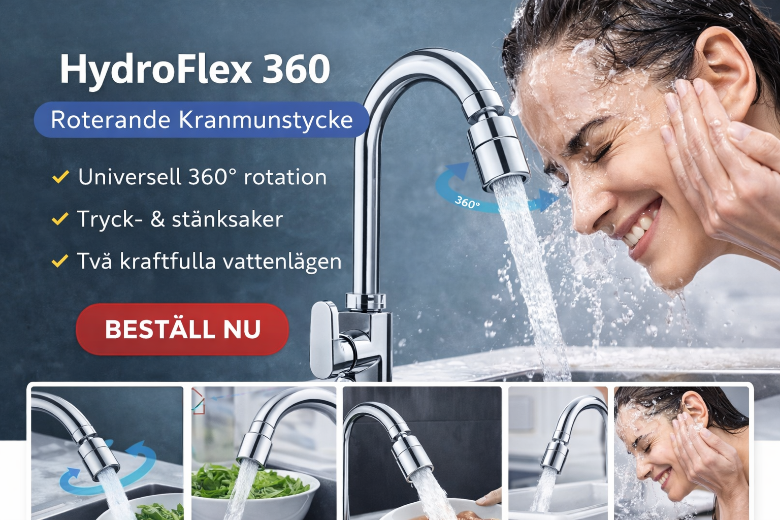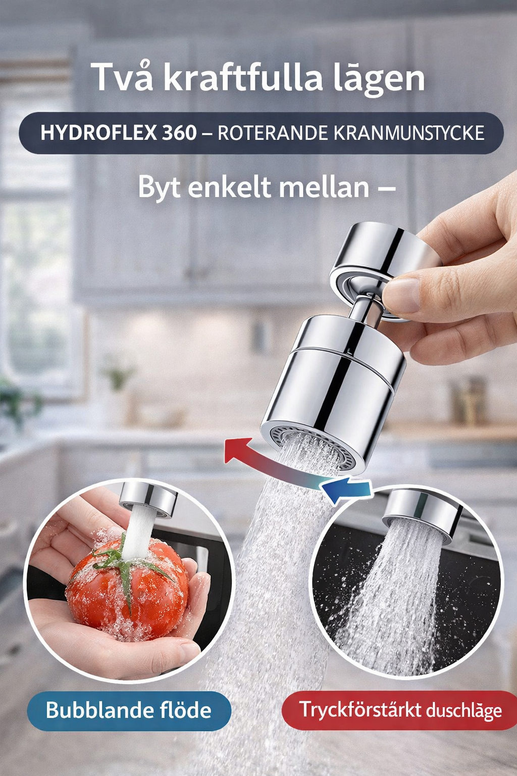 HydroFlex 360 är det smarta, roterande kranmunstycket som ger dig full kontroll över vattenflödet, minskar stänk och gör rengöring enklare än någonsin.